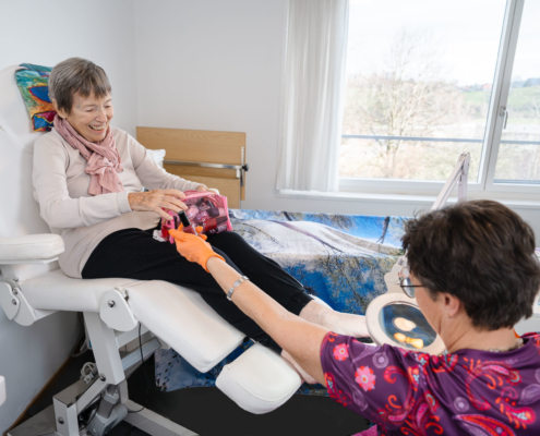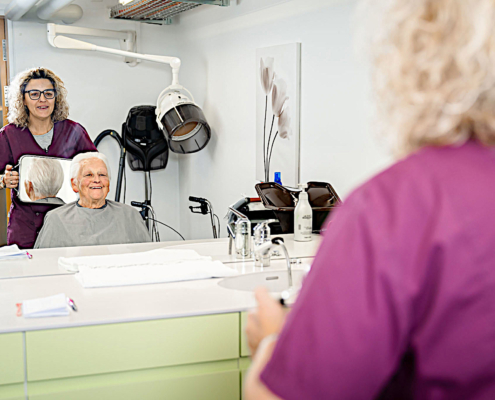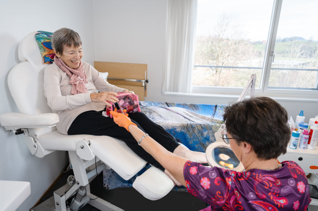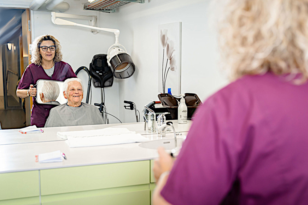 Nebst der Pflege und Betreuung werden unseren Bewohnerinnen und Bewohnern, sofern gewünscht oder notwendig, weitere Angebote im Haus ermöglicht: Coiffeuse, Podologie, Physiotherapie, psychiatrischer Beistand, Seelsorge, Sterbebegleitung und zahnärztliche Betreuung.